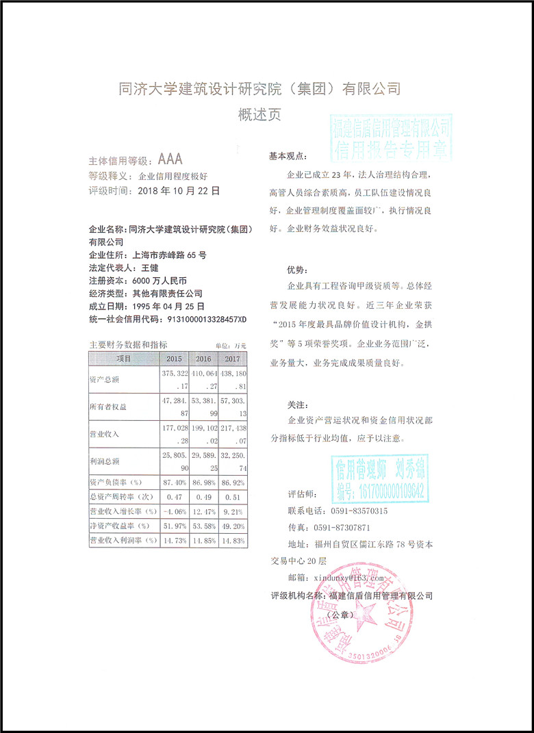同濟大學建筑設計研究院(集團)有限公司2018