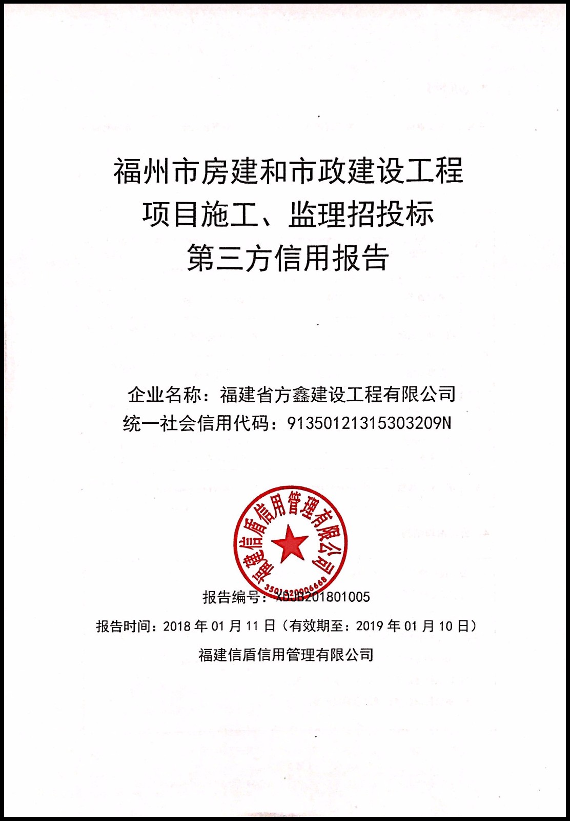福建省方鑫建設工程有限公司 XDJB201801005