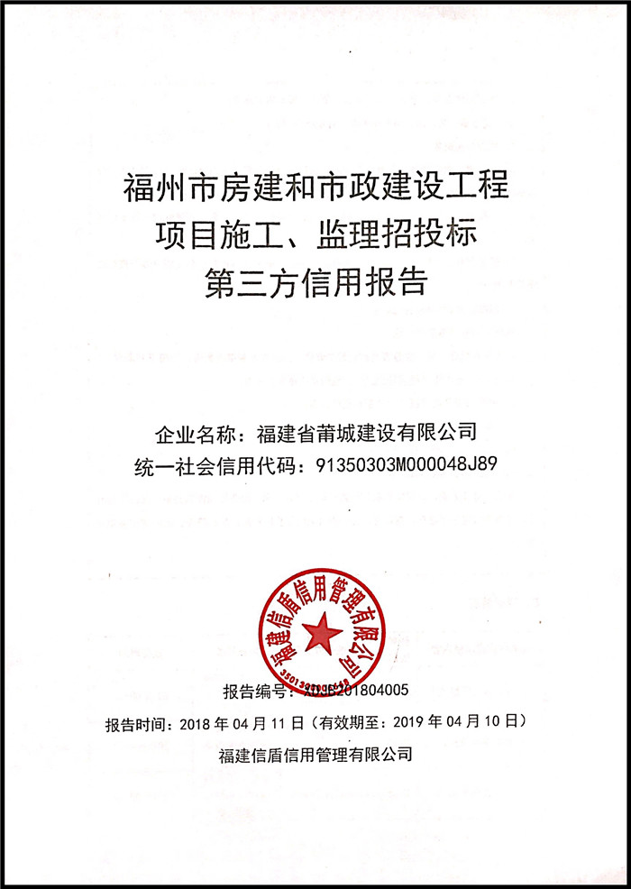 福建省莆城建設有限公司 XDJB201804005