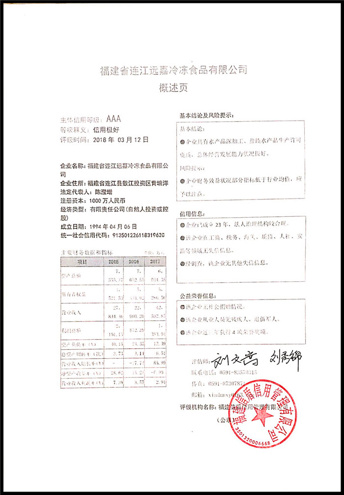 福建省連江遠嘉冷凍食品有限公司 XDPJ201803177