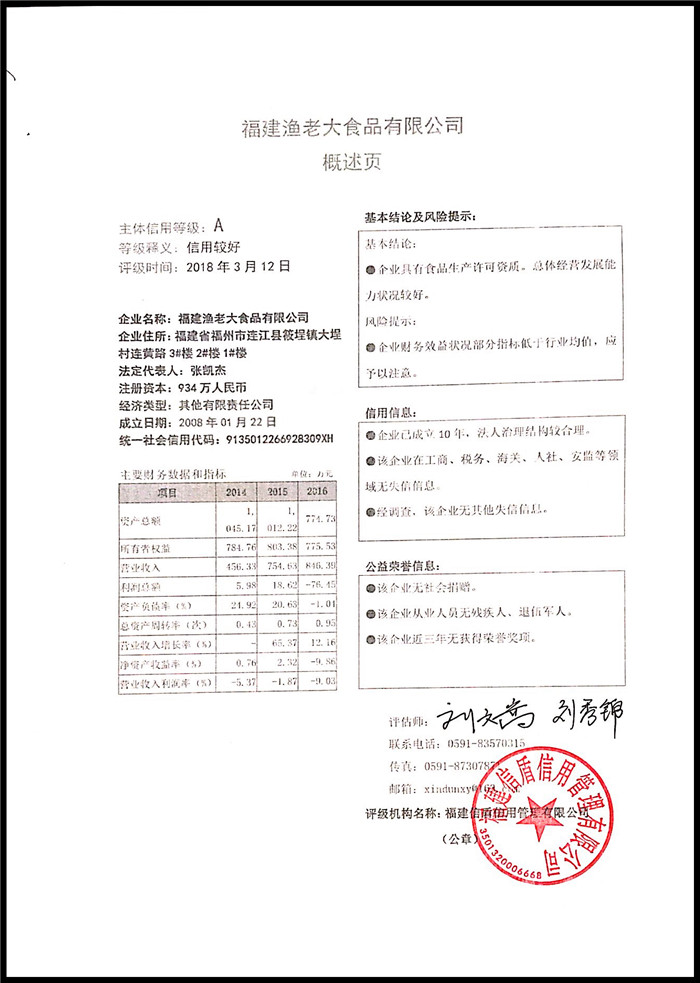 福建漁老大食品有限公司 XDPJ201803198