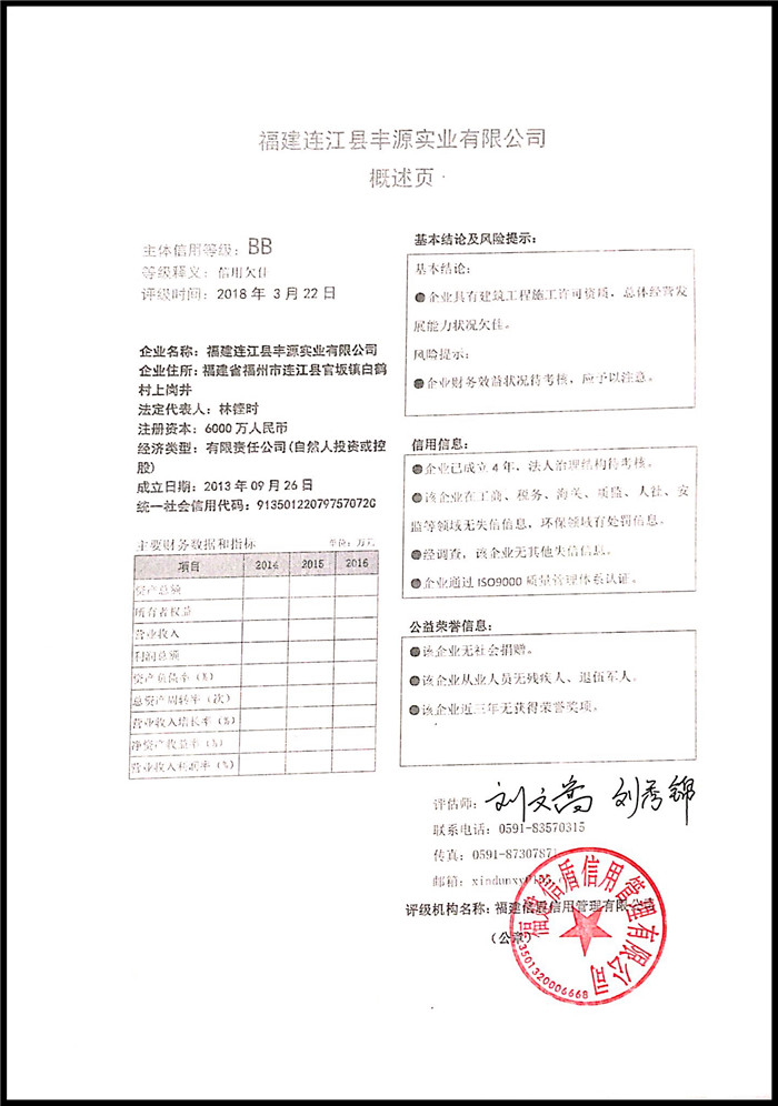 福建連江縣豐源實業有限公司 XDPJ201803218
