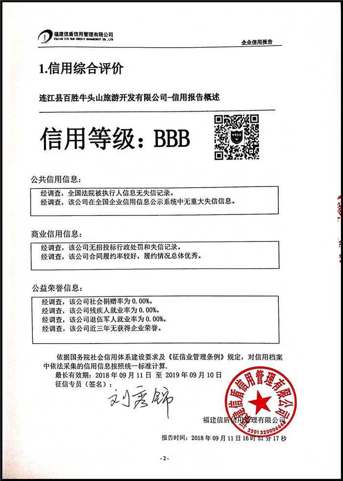 連江縣百勝牛頭山旅游開發有限公司 XDBD201809020