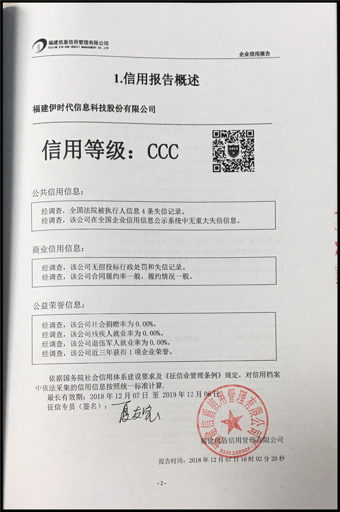 福建伊時代信息科技股份有限公司 XDBG201812121