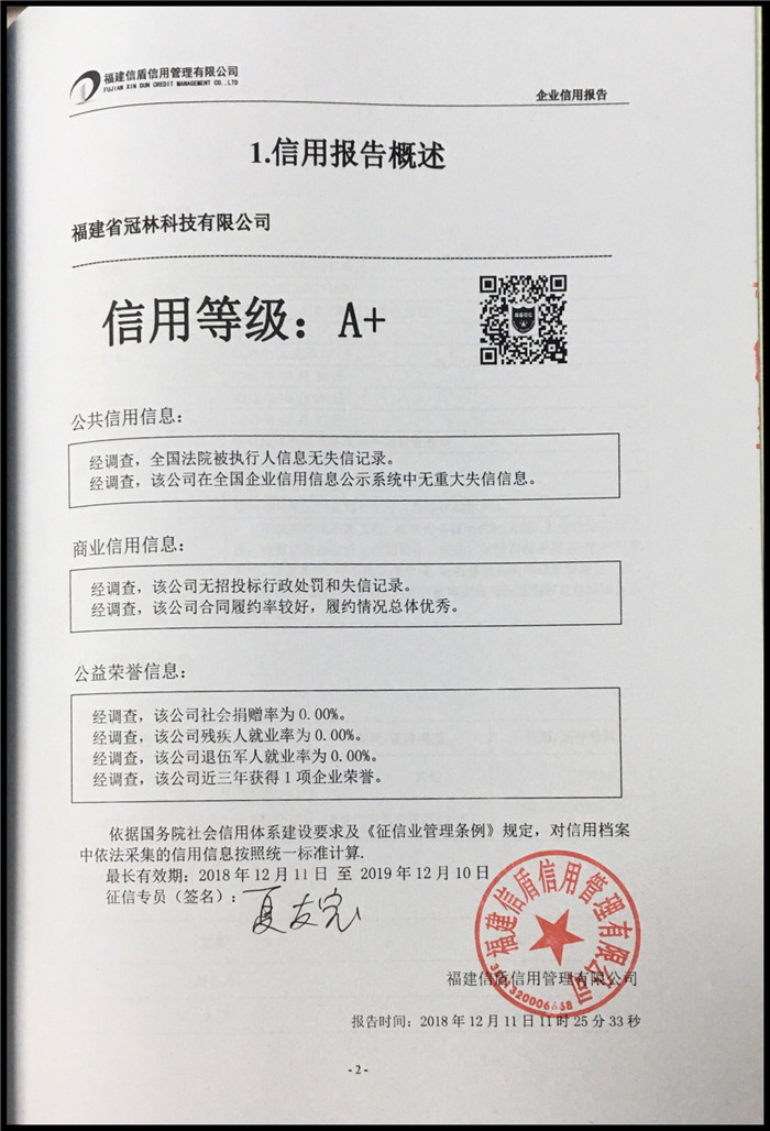 福建省冠林科技有限公司 XDBG201812109