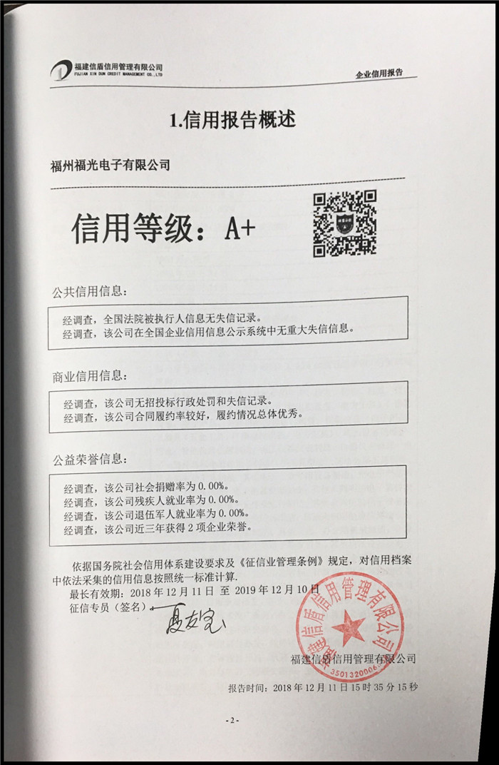 福州福光電子有限公司 XDBG201812126