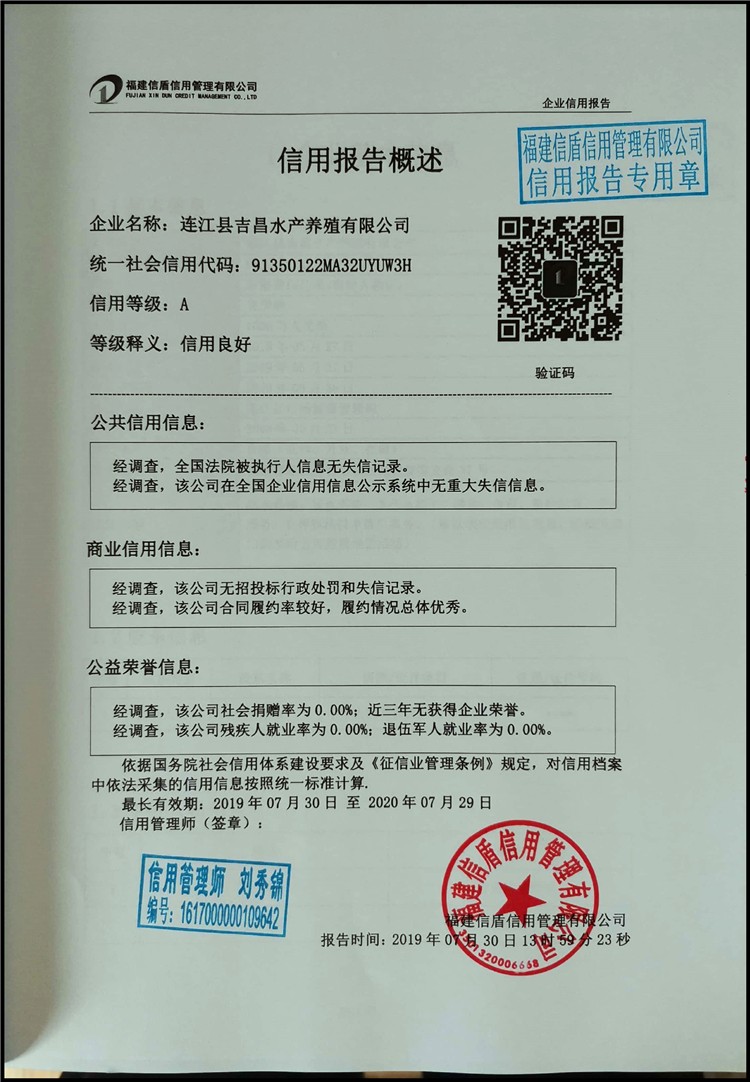 連江縣吉昌水產養殖有限公司2019